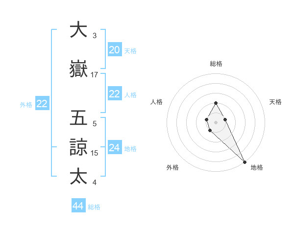 大嶽 五諒太さんの総格は44画の2点!