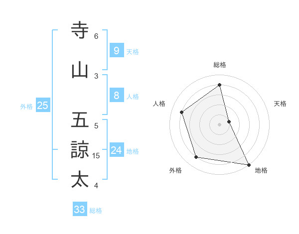 寺山 五諒太さんを姓名の画数から五運を鑑定