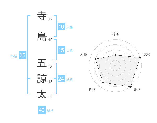 寺島 五諒太さんを姓名の画数から五運を鑑定