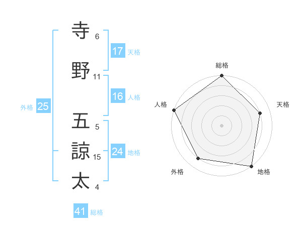 寺野 五諒太さんを姓名の画数から五運を鑑定