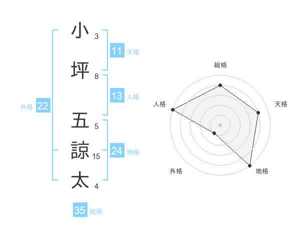 小坪 五諒太さんの総格は35画の4点!