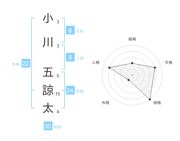 小川 五諒太さんを姓名の画数から五運を鑑定