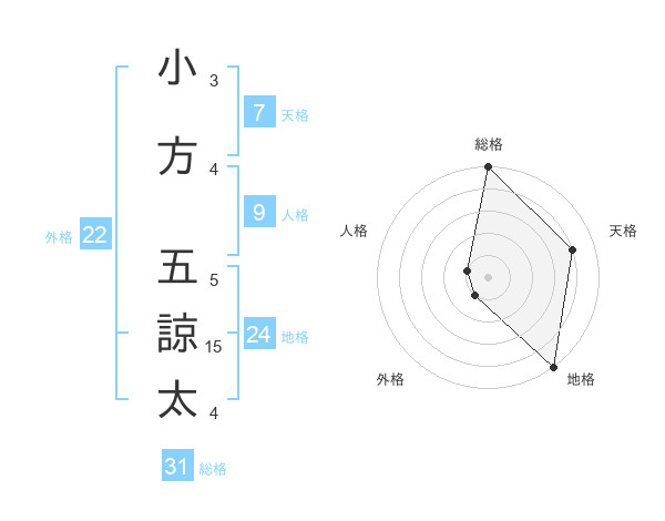 小方 五諒太さんを姓名の画数から五運を鑑定