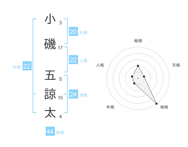 小磯 五諒太さんの総格は44画の2点!
