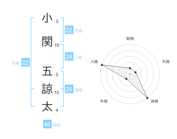 小関 五諒太さんを姓名の画数から五運を鑑定