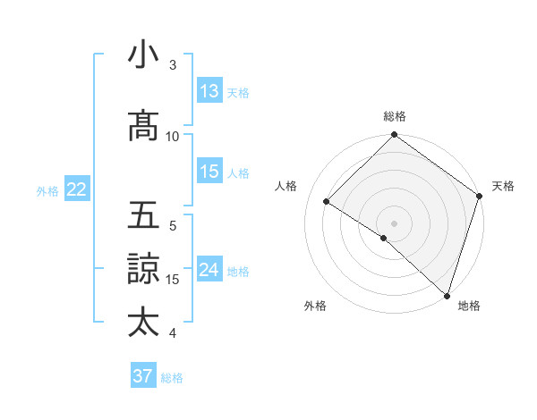 小髙 五諒太さんを姓名の画数から五運を鑑定