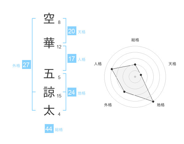 空華 五諒太さんを姓名の画数から五運を鑑定
