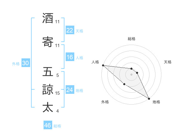 酒寄 五諒太さんの地格は24画の5点!