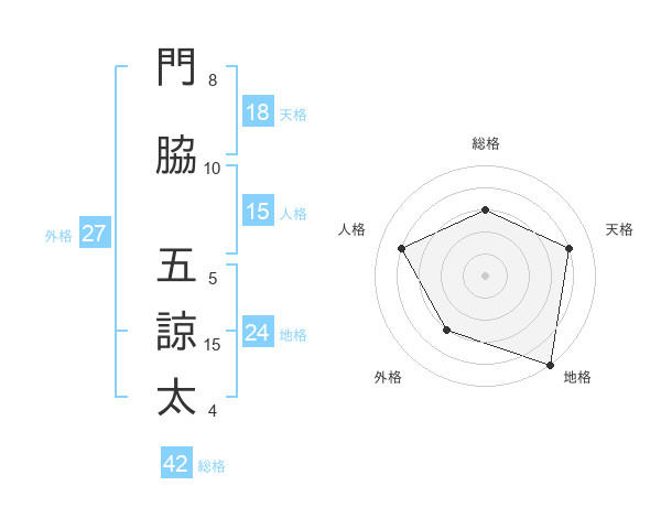門脇 五諒太さんを姓名の画数から五運を鑑定