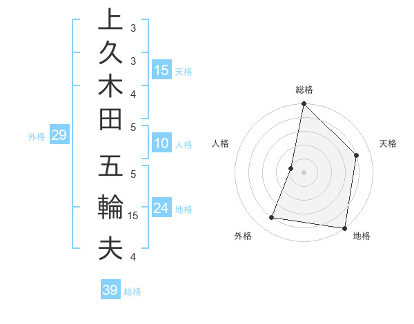 上久木田 五輪夫さんを姓名の画数から五運を鑑定