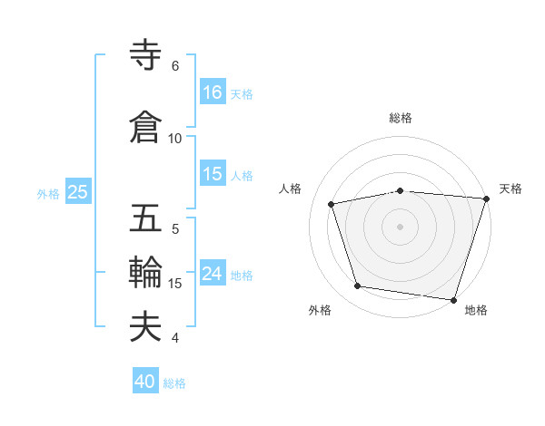 寺倉 五輪夫さんの総格は40画の2点!
