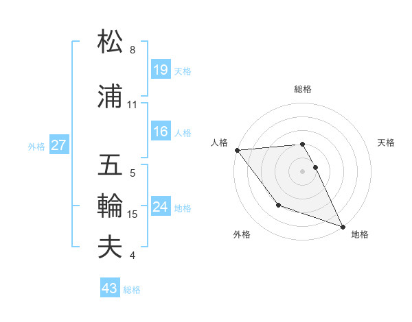 松浦 五輪夫さんの総格は43画の2点