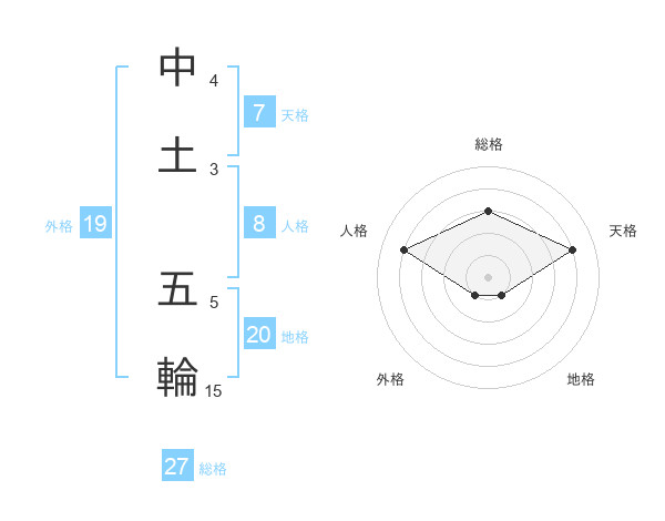 中土 五輪さんの総格は27画の3点!