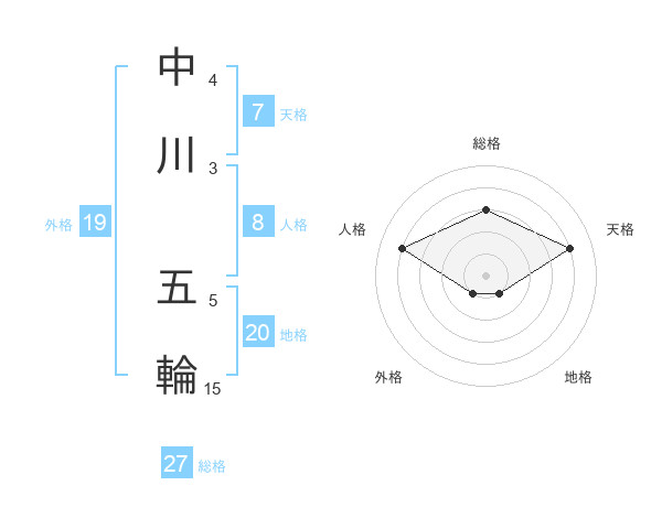 中川 五輪さんの外格は19画の1点!