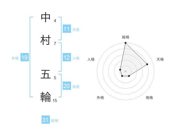 中村 五輪さんの総格は31画の5点!