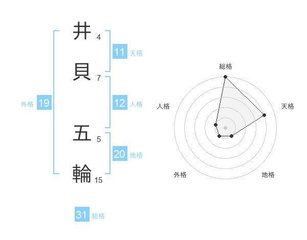 井貝 五輪さんを姓名の画数から五運を鑑定