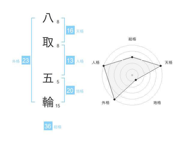 八取 五輪さんの外格は23画の5点!