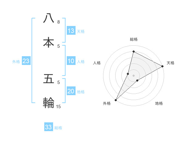 八本 五輪さんの総格は33画の4点!