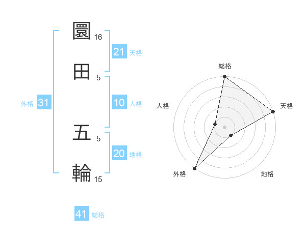 圜田 五輪さんを姓名の画数から五運を鑑定