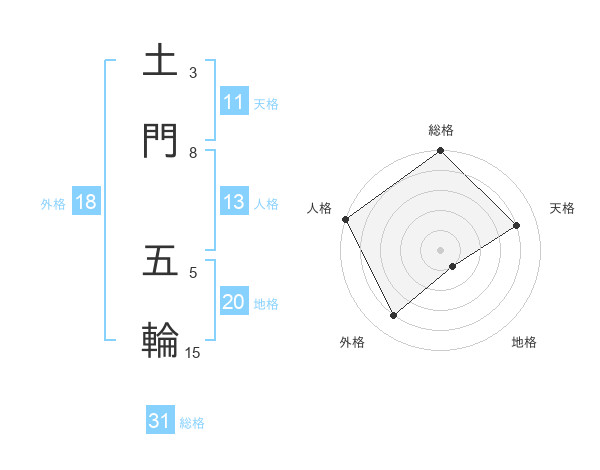 土門 五輪さんの総格は31画の5点!