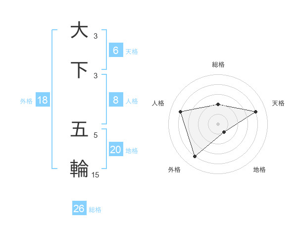 大下 五輪さんの総格は26画の2点!