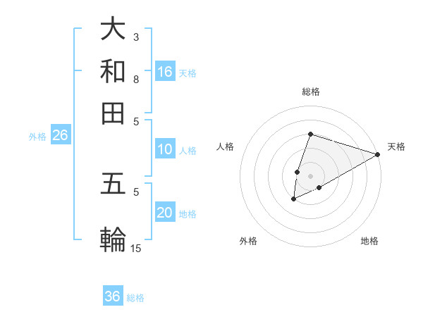 大和田 五輪さんを姓名の画数から五運を鑑定