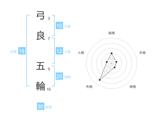 弓良 五輪さんを姓名の画数から五運を鑑定