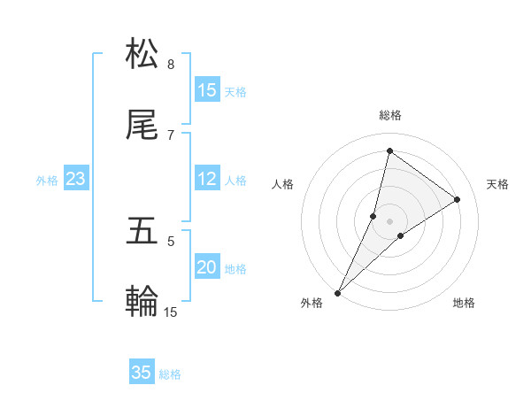 松尾 五輪さんを姓名の画数から五運を鑑定