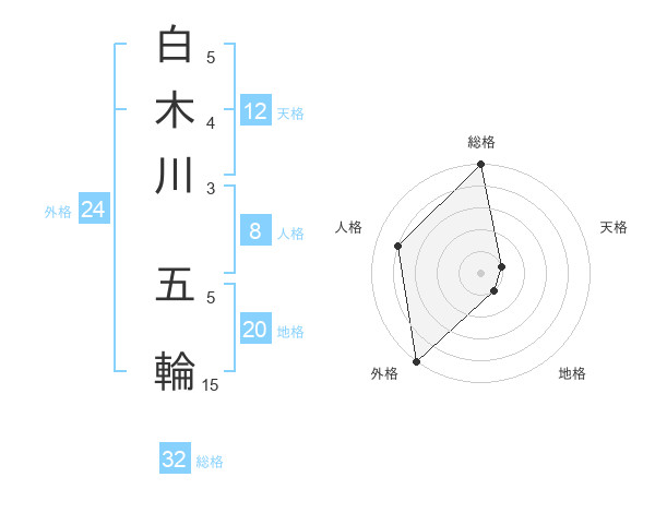 白木川 五輪さんを姓名の画数から五運を鑑定