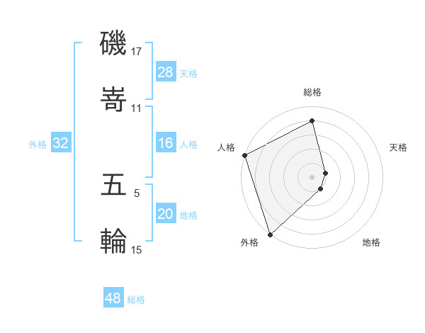 磯嵜 五輪さんを姓名の画数から五運を鑑定
