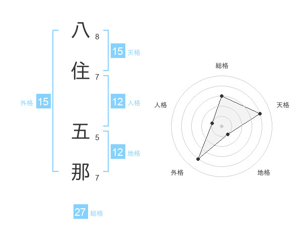八住 五那さんの天格は15画の4点!