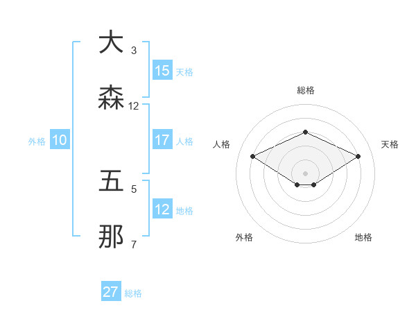大森 五那さんの天格は15画の4点!