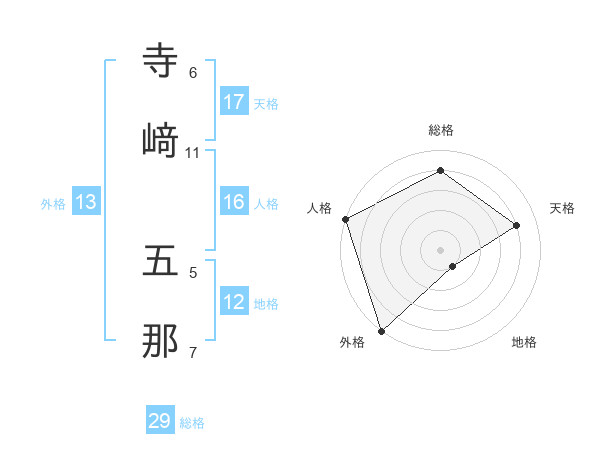 寺﨑 五那さんの総格は29画の4点!