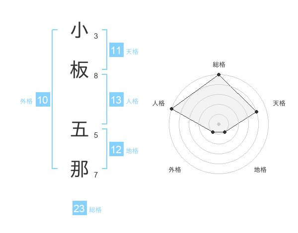 小板 五那さんの総格は23画の5点!