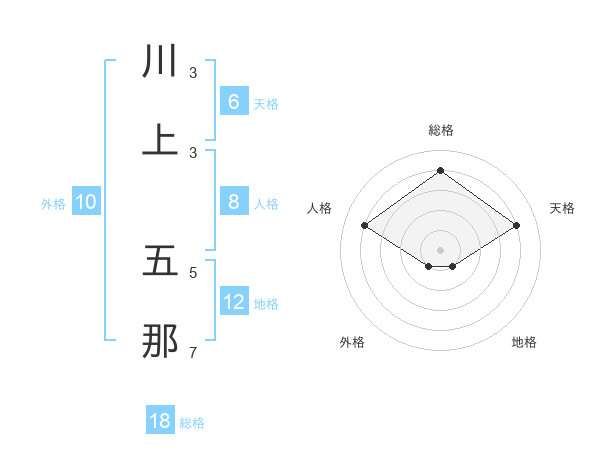 川上 五那さんの天格は6画の4点!