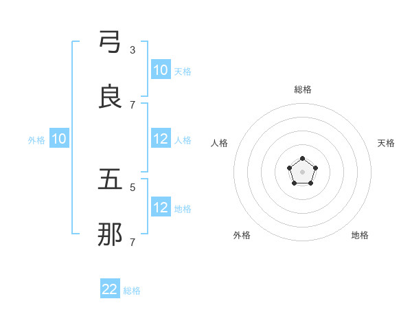 弓良 五那さんを姓名の画数から五運を鑑定