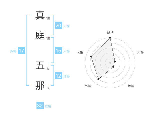 真庭 五那さんの天格は20画の1点!