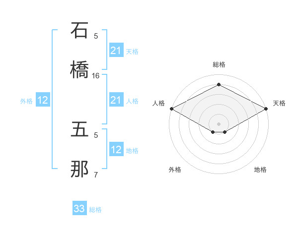 石橋 五那さんの天格は21画の5点!