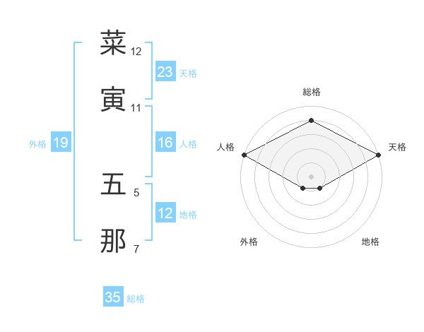 菜寅 五那さんの天格は23画の5点!