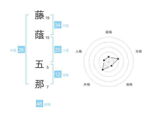 藤蔭 五那さんを姓名の画数から五運を鑑定