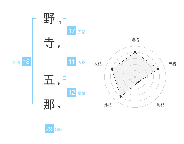 野寺 五那さんを姓名の画数から五運を鑑定