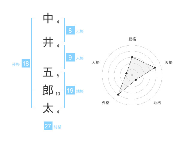 中井 五郎太さんの総格は27画の3点!
