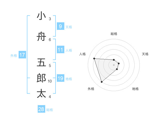 小舟 五郎太さんの総格は28画の1点!