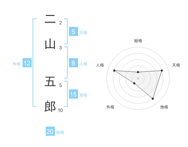 二山 五郎さんの総格は20画の1点!