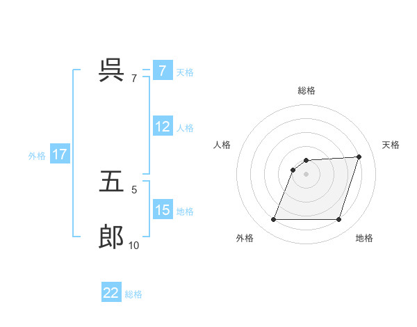 呉 五郎さんの総格は22画の1点!