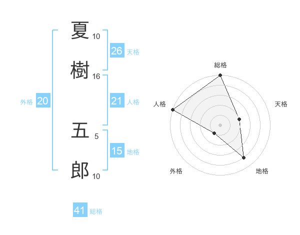 夏樹 五郎さんを姓名の画数から五運を鑑定