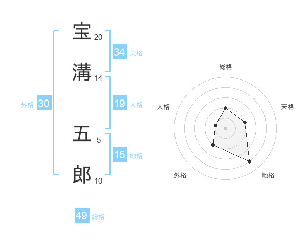 宝溝 五郎さんを姓名の画数から五運を鑑定