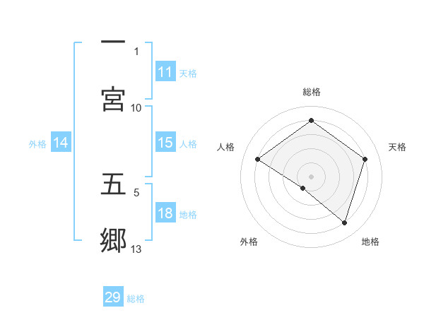 一宮 五郷さんを姓名の画数から五運を鑑定