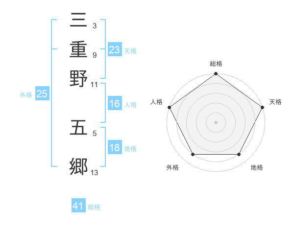 三重野 五郷さんを姓名の画数から五運を鑑定