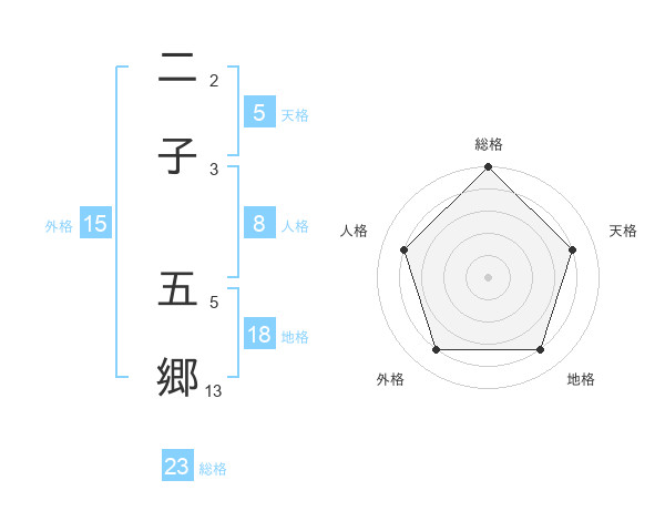 二子 五郷さんの総格は23画の5点!